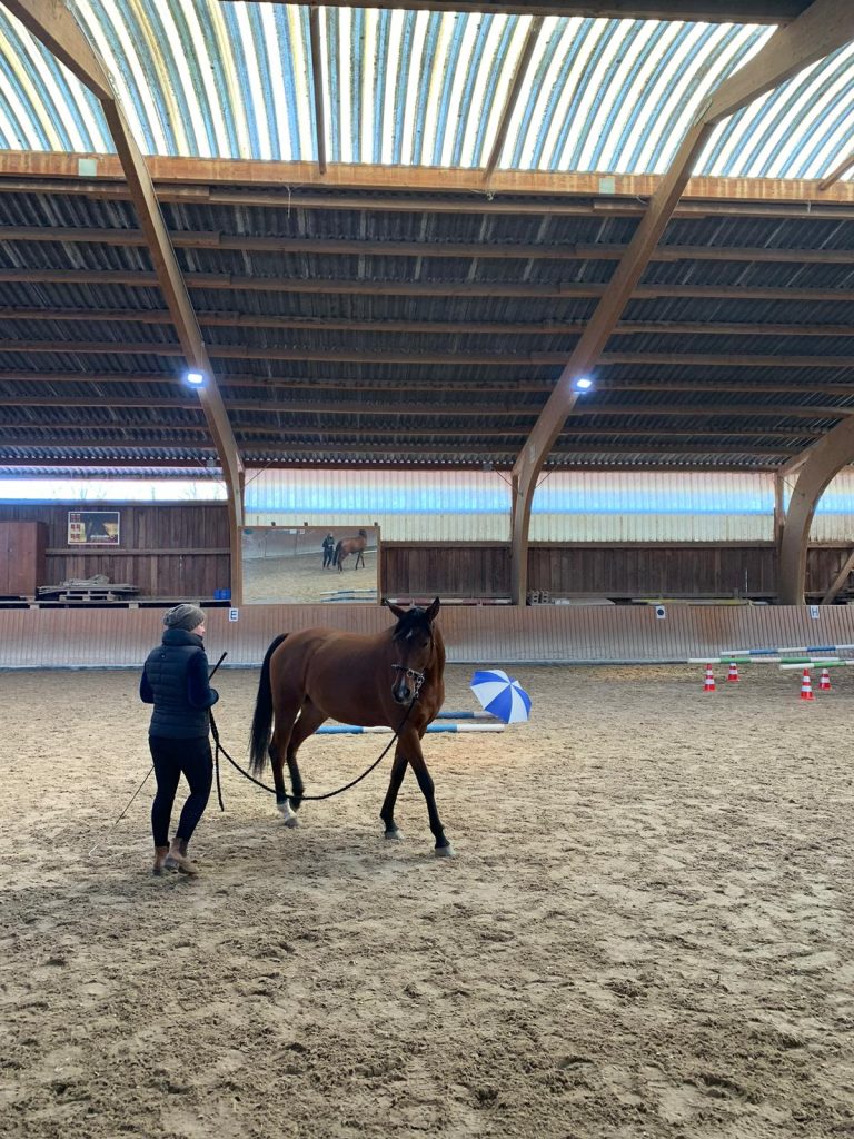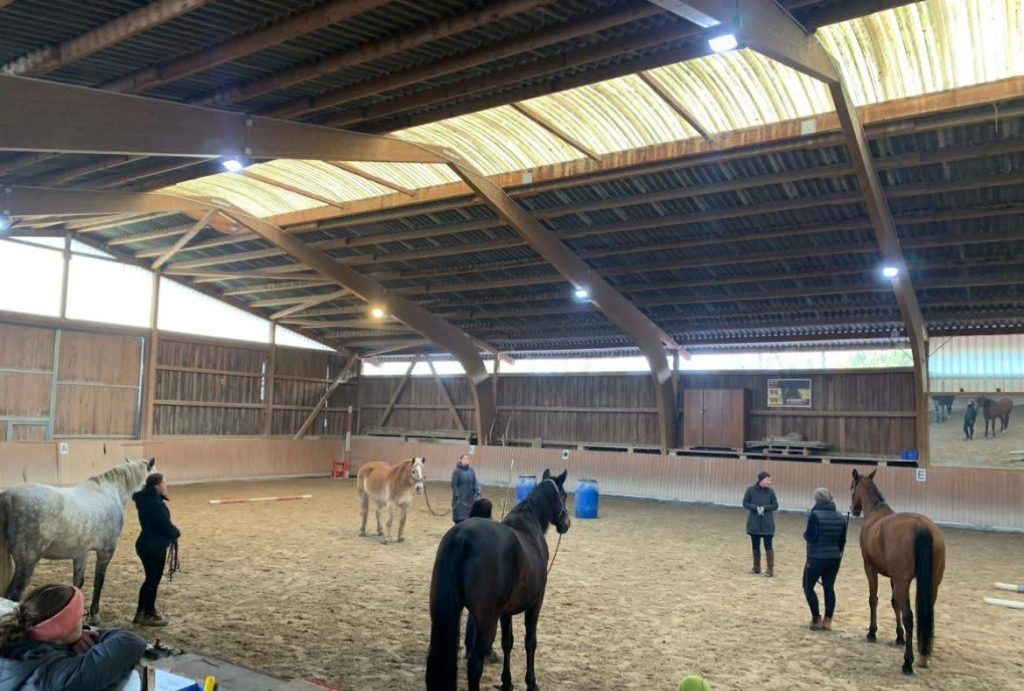 Wir arbeiten in kleinen Gruppen oder einzeln, um eine intensive und individuelle Betreuung zu gewährleisten. So bleibt Raum für gezielte Korrekturen, persönliche Rückfragen und individuelles Lerntempo. Die Lehrgänge finden in unserer modernen Reithalle oder auf dem großzügigen Außenplatz statt – wetterunabhängig und unter besten Bedingungen.