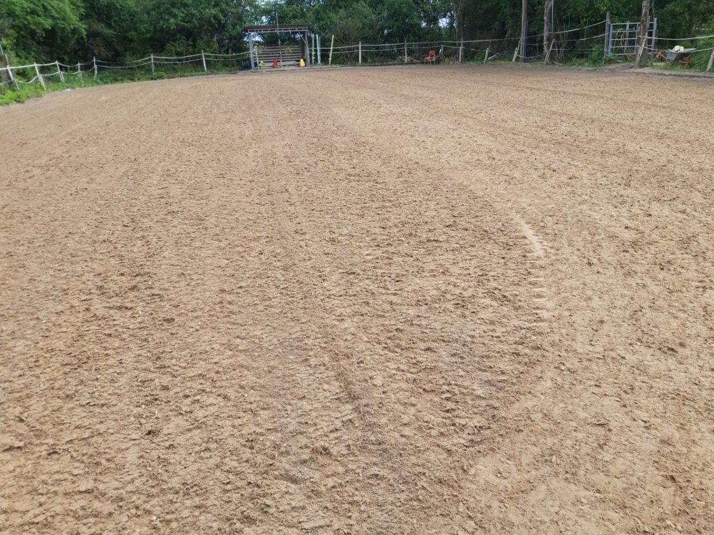 Unser Außenplatz bietet auf großzügiger Fläche perfekte Trainingsmöglichkeiten unter freiem Himmel. Der Boden ist elastisch und wasserdurchlässig, was auch bei Regen eine gute Reitbarkeit ermöglicht.